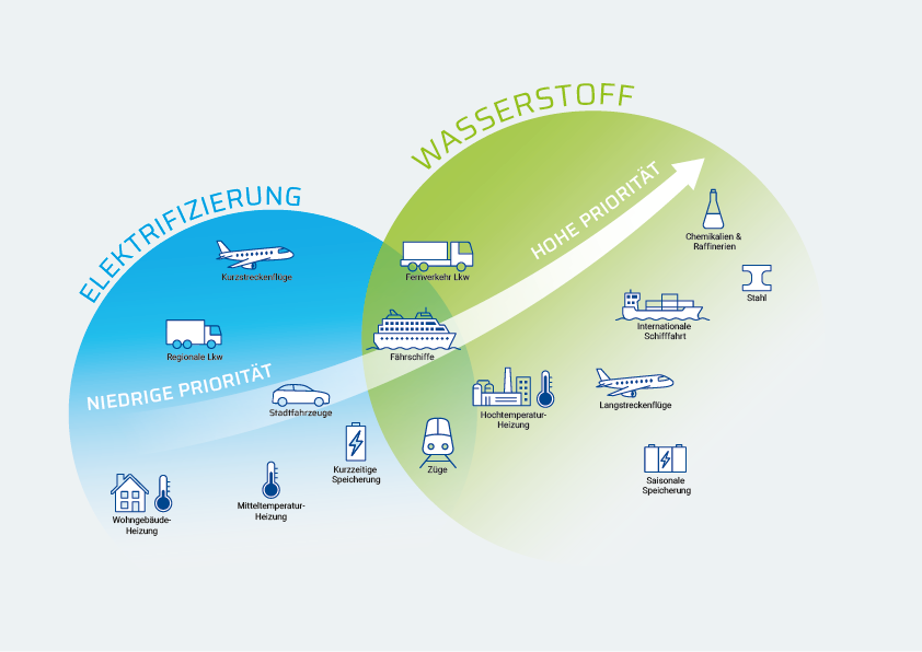 Diese gibt es bislang nur in sehr geringem Umfang, beispielsweise als Personenfähre in Norwegen oder Schubboot im Raum Berlin. Erste Pilotprojekte mit Wasserstoff-betriebenen Lastschiffen sind aber für die kommenden Jahre geplant.