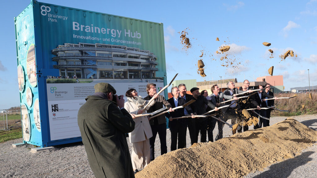 Wer viel vor hat, der braucht viel Platz. Im Frühjahr, bei der jüngsten Erhebung, arbeiteten laut Thomas Schmitz rund 175 Menschen im Park. Langfristig sollen es 5000 sein. Der nächste Meilenstein im Park ist ganz frisch gesetzt: In dieser Woche erfolgte der Spatenstich für den Neubau des Brainergy Hubs, des zentralen Bauwerks im Park. Hier soll unter anderem das hochskaliert werden, was im bereits sehr weit fortgeschrittenen Startup Village angefangen hat. Junge Firmen, die gegründet sind, sollen hier mehr Platz finden, um weiter zu wachsen. Unter anderem. Grundsätzlich stehen der Hub und der Park allen Firmen offen, die sich Nachhaltigkeit und Innovation auf die Fahnen geschrieben haben. 2026 soll der Gebäudekomplex fertig sein.