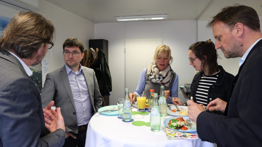 HC-H2-Direktor Prof. Andreas Peschel (2.v.l.) im Austausch mit den Gästen. Foto: Forschungszentrum Jülich/Jansen