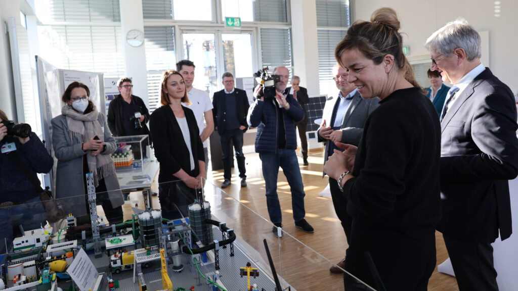 „Sie werden Geschichte schreiben“, sagte die Ministerin, nachdem Peter Wasserscheid die Ziele des HC-H2 anhand des Lego-Modells erklärt hatte.